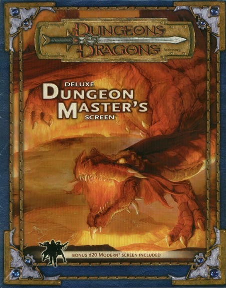 Item Code: #88596 Title: Deluxe Dungeon Master's Screen Type: Accessory Author: Christopher Perkins and Ed Stark Published: 2004 Format: 2 4-panel cardstock screens, cover |