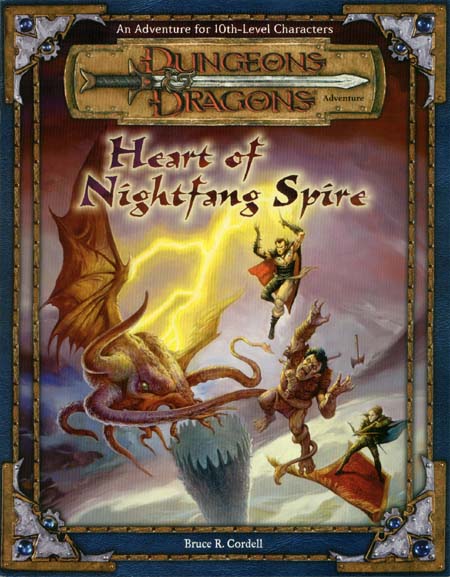 Item Code: #11847 Title: Heart of Nightfang Spire Type: Adventure For: 10th level characters Author: Bruce R. Cordell Published: 2001 Format: 32-page book |