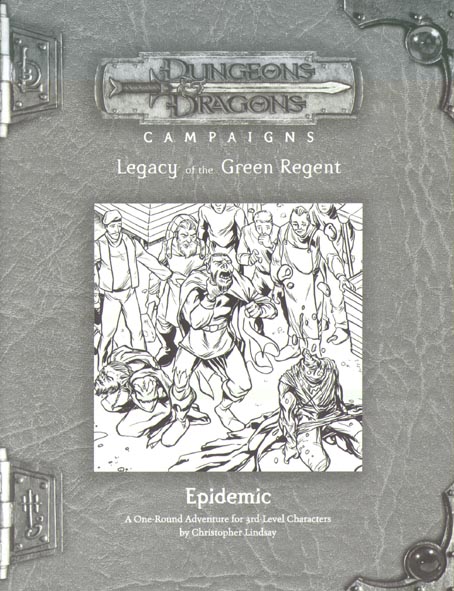 Item Code: (LGR6) Title: Epidemic Type: Adventure For: 3rd level characters Author: Christopher Lindsay Published: 2003 Format: 26-page book |