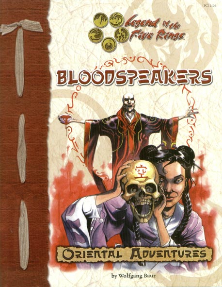 BOTH THE FOUR BLOODSWORDS OF YAJINDEN AND THE FOUR MASKS OF IUCHIBAN! The Power of Blood by Wolfgang Baur BLOOD IS LIFE, AND BLOOD IS DEATH This sourcebook also contains the complete Bloodspeaker adventure, "Written in Blood." Players face off against the servants of Iuchiban, whose influence extends far beyond the lands of the Scorpion, Crane, and Phoenix, into every corner of the empire. A blood sorcerer has found an ancient secret, and threatens to use it to destroy a clan from within. Defeat the threat of the Ruby of Iuchiban, or watch the Bloodspeaker corruption undermine the throne of Rokugan! Blood will Rise to the Throne