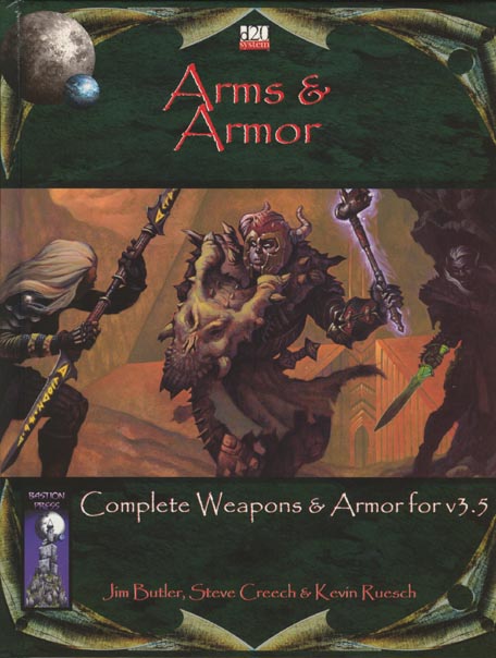 Item Code: #BAS1021 Title: Arms & Armor Type: Accessory Author: Jim Butler, Steve Creech & Kevin Ruesch Published: 2004 Publisher: Bastion Press Format: 176-page perfect-bound hardback book |