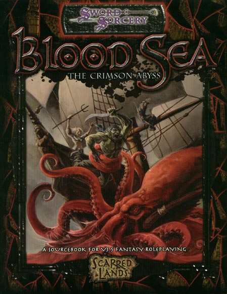 Shackled in a trench deep in the ocean floor lies the mighty titan Kadum, the Father of Monsters, his chest ever bleeding from the hole where his heart was plucked out. The Mountainshaker's endless blood has transformed the waves into a vast crimson sea that changes everything it touches - men and beasts alike. This sourcebook contains information for game play in and around the Blood Sea, from its creation to those who owe their existence to it. Venture from the surface of the red waves to the very sanguine depths of the crimson expanse, and even to unique lands such as the Heartsblood Archipelago. Sword and Sorcery books are published under the Open Game License and are 100% compatible with revised 3rd Edition rules. |