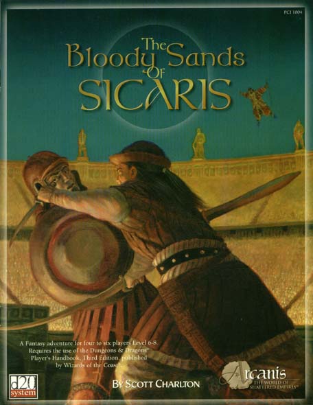 Item Code: #PCI1004 Title: The Bloody Sands of Sicaris Type: Adventure For: 4-6 characters, levels 6-8 Author: Scott Charlton Published: 2001 Publisher: Paradigm Concepts, Inc. Format: 32-page book |