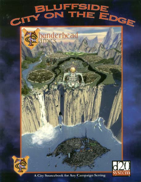 Item Code: #TG1001 Title: Bluffside: City on the Edge Type: Accessory Published: 2002 Publisher: Thunderhead Games Format: 144-page perfect-bound book w/fold-out map |
