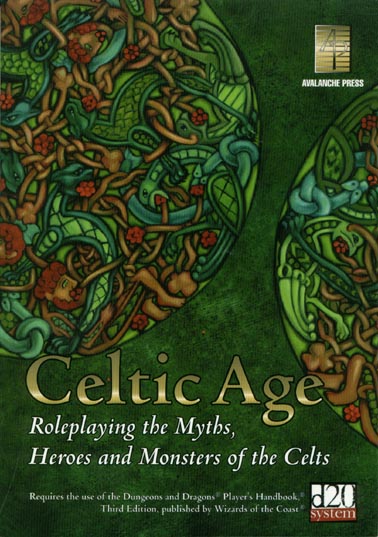 Item Code: #APL918 Title: Celtic Age: Roleplaying the Myths, Heroes and Monsters of the Celts Type: Accessory Author: Dr. Mike Bennighof, Ph.D., John R. Phythyon, Jr., Ree Soesbee Published: 2002 Publisher: Avalanche Press LTD Format: 192-page perfect-bound book |