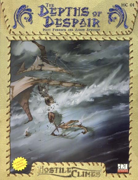 the ghost of a dead god! The Depths of Despair is the first in a series of D20 System setting books featuring isolated and dangerous environments - "Hostile Climes" - that may be dropped into any fantasy campaign! Inside is a detailed setting featuring a city at the bottom of a whirlpool and the caverns beneath, new skills, feats, gear, prestige classes, monsters, and a complete adventure to drop into your campaign right away! |