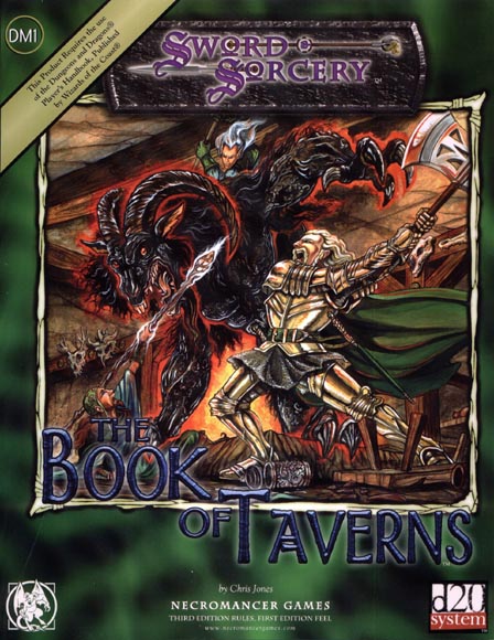 Item Code: #WW8374 (DM1) Title: The Book of Taverns Type: Accessory Author: Chris Jones Published: 2002 Publisher: Necromancer Games Format: 112-page perfect-bound book |