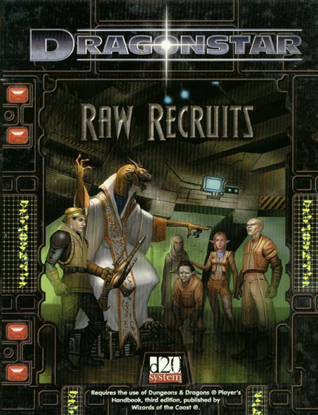 Item Code: #MYG1101 Title: Dragonstar: Raw Recruits Type: Adventure For: 1st - 7th level characters Published: 2002 Publisher: Mystic Eye Games Format: 160-page perfect-bound book |