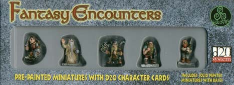 Item Code: #HCI701 Title: Fantasy Encounters: Dwarves Type: Accessory Published: 2001 Publisher: Holistic Design Format: 5 pre-painted pewter miniatures in plastic tray, 17 cardstock stat cards, 5 plastic bases in mini-ziploc bag |
