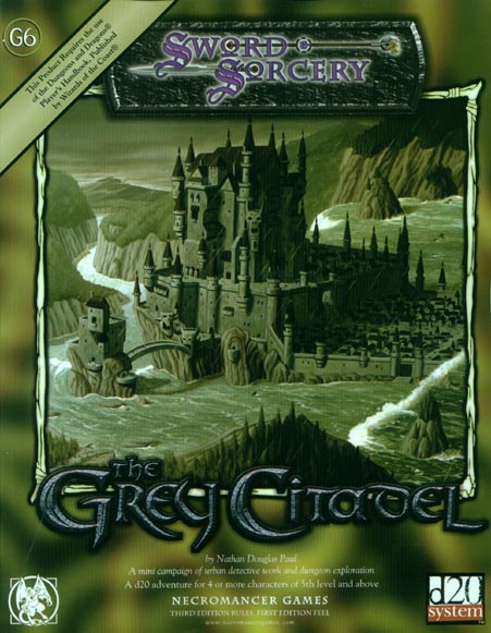 Item Code: #WW8376 (G6) Title: The Grey Citadel Type: Adventure For: 4-6 characters, levels 5 and higher Author: Nathan Douglas Paul Published: 2003 Publisher: Necromancer Games Format: 112-page perfect-bound book |
