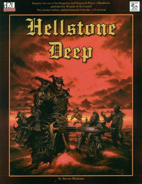 Item Code: #MKY1123 Title: Hellstone Deep Type: Adventure For: 4-6 characters, levels 18-20 Author: Steven Montano Published: 2003 Publisher: MonkeyGod Enterprises Format: 104-page perfect-bound book |