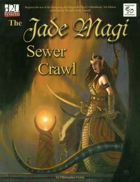 Item Code: #MKY1117 Title: The Jade Magi Sewer Crawl Type: Adventure For: 4th-6th level characters Author: Christopher Colón Published: 2002 Publisher: MonkeyGod Enterprises Format: 72-page perfect-bound book |