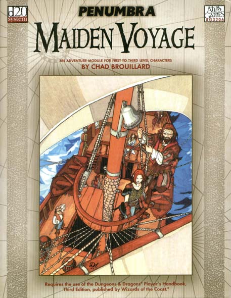 Item Code: #AG3206 Title: Maiden Voyage Type: Adventure For: 1st-3rd level characters Author: Chad Brouillard Published: 2001 Publisher: Atlas Games Format: 40-page book |