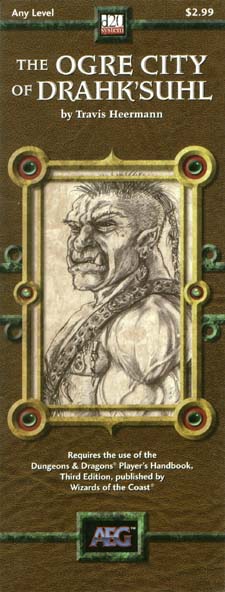 Item Code: #AEG8337 Title: The Ogre City of Drahk'Suhl Type: Adventure For: Any level Author: Travis Heermann Published: 2002 Publisher: Alderac Entertainment Group Format: 16-page book |