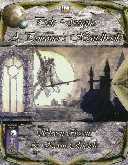 Item Code: #BAS1007 Title: Pale Designs: A Poisoner's Handbook Type: Accessory Author: Steven Creech & Kevin Ruesch Published: 2002 Publisher: Bastion Press Format: 96-page perfect-bound book |