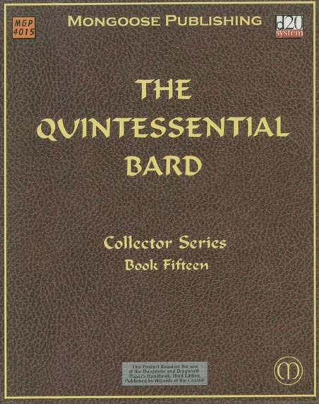 Item Code: #MGP4015 Title: The Quintessential Bard Type: Accessory Author: Shannon Kalvar Published: 2003 Publisher: Mongoose Publishing Format: 128-page perfect-bound book |