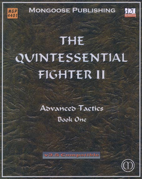 Item Code: #MGP4401 Title: The Quintessential Fighter II Type: Accessory Author: Alejandro Melchor Published: 2004 Publisher: Mongoose Publishing Format: 128-page perfect-bound book |