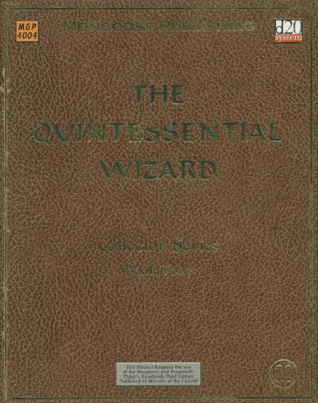 Item Code: #MGP4004 Title: The Quintessential Wizard Type: Accessory Author: Michael Mearls Published: 2002 Publisher: Mongooose Publishing Format: 128-page perfect-bound book |
