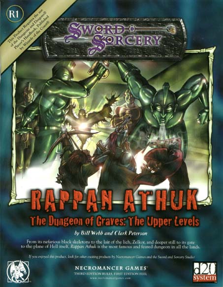 Item Code: #WW8360 (R1) Title: Rappan Athuk - The Dungeon of Graves: The Upper Levels Type: Adventure Author: Bill Webb and Clark Peterson Published: 2001 Publisher: Necromancer Games / White Wolf Publishing Format: 48-page book |