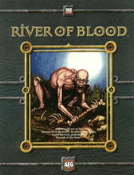 Item Code: #AEG8506 Title: River of Blood Type: Adventure For: 4-6 characters, levels 7-9 Author: Douglas Sun Published: 2003 Publisher: Alderac Entertainment Group Format: 48-page perfect-bound book |