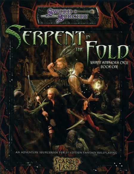 Sword and Sorcery books are published under the Open Gaming License and are 100% compatible with 3rd edition rules. Something stirs in the land of Vesh - something unwholesome. In recent times, a relic of Mormo's destruction was brought to the care of the Vigils, but not without great sacrifice. The servants of the Hag Queen will stop at nothing to get it back - and the only thing that stands between them and the Serpent Amphora is your characters! Are they up to the challenge? Usable alone or as part of the ongoing Serpent Amphora Cycle - which begins with "The Serpent Amphora," a free adventure available for download at www.swordsorcery.com - Serpent in the Fold is an adventure for characters of 3rd - 4th level. |