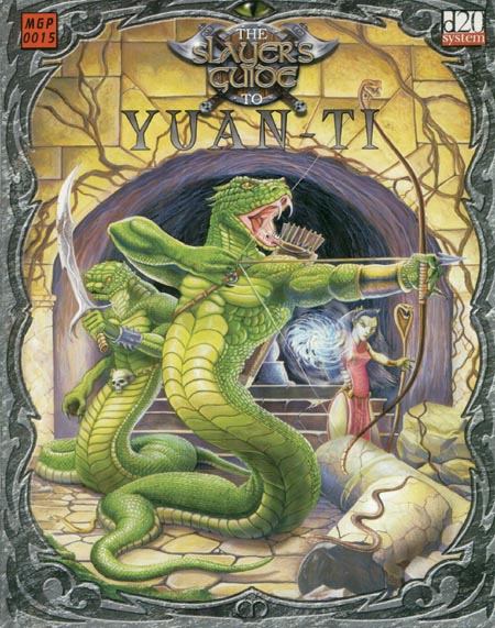 Item Code: #MGP0015 Title: The Slayer's Guide To Yuan-Ti Type: Accessory Author: Paul Tucker Published: 2003 Publisher: Mongoose Publishing Format: 32-page book |