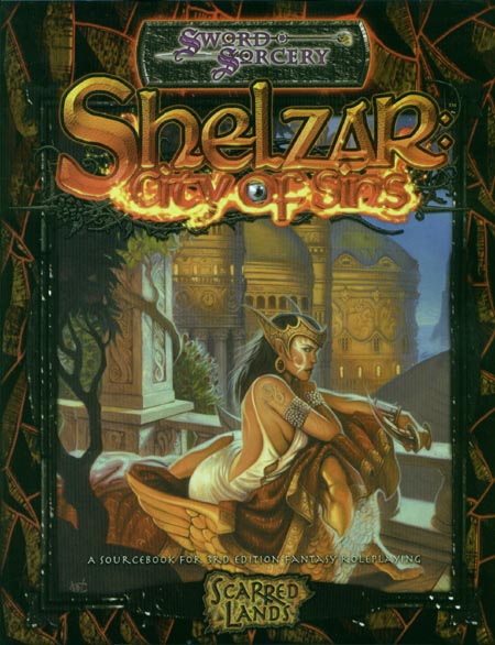 Sword and Sorcery books are published under the Open Gaming License and are 100% compatible with 3rd Edition rules. In Shelzar the Wicked, every desire can be fulfilled for those able to pay the price. Said to be half as old as Scarn itself, Shelzar has survived conquest, catastrophe and chaos to emerge as the continent's capital of decadence and sin. This volume contains a complete history of Shelzar, details of its inhabitants, locations, and culture, as well as adventures to challenge to most jaded of player characters. Venture to the most decadent city of Ghelspad, learn its secrets and partake of its pleasures, but never let your guard down, for death comes as quickly as delight in Shelzar's smoke-filled chambers and shadowed alleys, and the hand that delivers a soft caress one moment can hold a poisoned dagger the next. Desire and danger are one in the City of Sins |