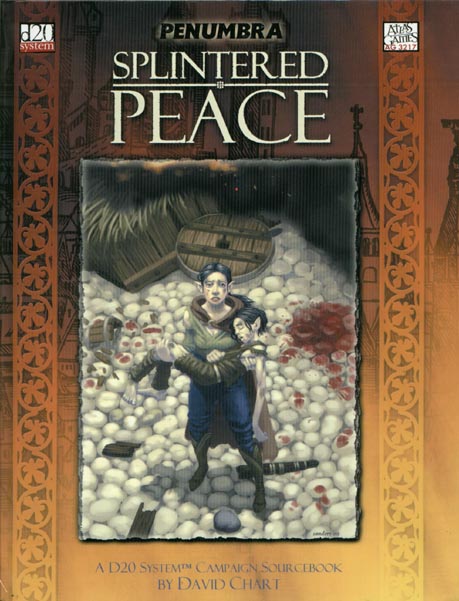 Item Code: #AG3217 Title: Splintered Peace Type: Accessory Author: David Chart Published: 2002 Publisher: Atlas Games Format: 112-page perfect-bound hardback book |