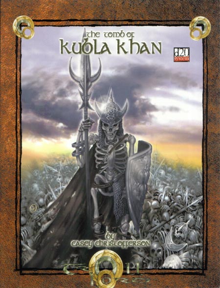 Item Code: #TLG1908 Title: The Tomb of Kubla Khan Type: Adventure For: 4 - 6 characters, 7th - 9th level Author: Casey Christofferson Published: 2005 Publisher: Troll Lord Games Format: 52-page perfect-bound book |