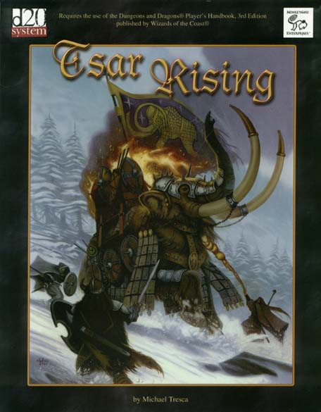 Item Code: #MKY1107 Title: Tsar Rising Type: Adventure For: 8th-9th level characters Author: Michael Tresca Published: 2001 Publisher: MonkeyGod Enterprises Format: 60-page perfect-bound book |