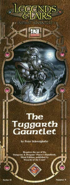 Item Code: #DD09 Title: The Tuggarth Gauntlet Type: Adventure For: 4-6 characters, levels 4-6 Author: Peter Schweighofer Published: 2001 Publisher: Fantasy Flight Games Format: 16-page book |