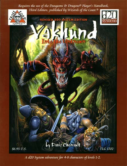 Item Code: #TLG1702 Title: Vakhund: Into the Unknown Type: Adventure For: 4-8 characters, levels 1-2 Author: Davis Chenault Published: 2001 Publisher: Troll Lord Games Format: 24-page book |