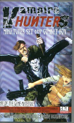 JOIN THE FIGHT TO SAVE THE WORLD! SET INCLUDES 8 FINE METAL MINIATURES, CHARACTER STATS FOR VAMPIRE HUNTER$ AND THE D20 SYSTEM, A MAP AND 2 SCENARIOS |