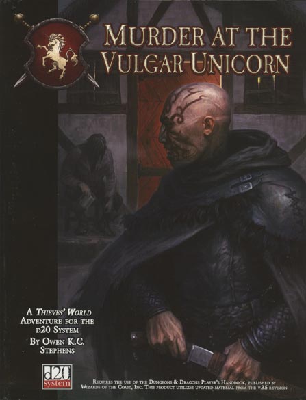 random murder in the Vulgar Unicorn puts the heroes' freedom in jeopardy. To