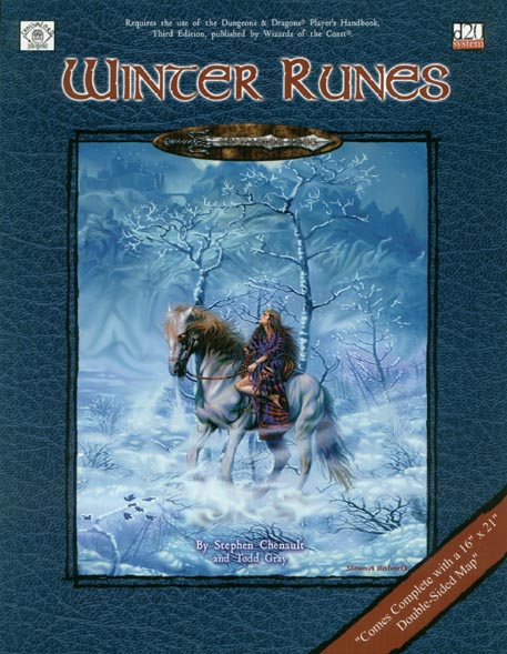 Item Code: #TLG1602 Title: Winter Runes Type: Accessory Author: Stephen Chenault and Todd Gray Published: 2003 Publisher: Troll Lord Games Format: 80-page perfect-bound book, fold-out map |