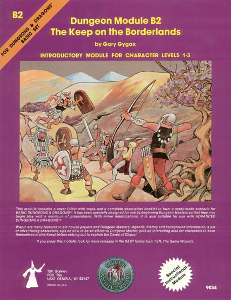Item Code: 9034 (B2) Title: The Keep on the Borderlands Type: Adventure Author: Gary Gygax Published: 25th Anniversary Set reprint - 1999 Format: 28-page book |
