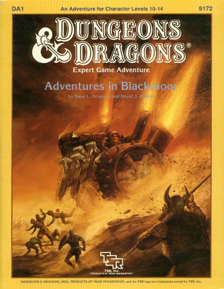 Item Code: #9172 (DA1) Title: Adventures in Blackmoor Type: Adventure Author: Dave L. Arneson and David J. Ritchie Published: 1986 Format: 64-page book, tri-fold cover, fold-out map |