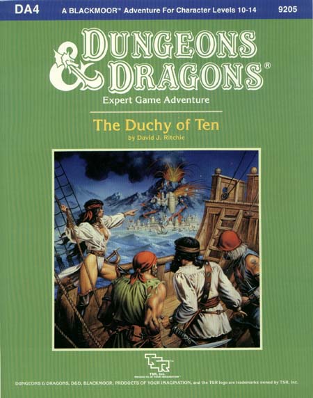 Item Code: #9205 (DA4) Title: The Duchy of Ten Type: Adventure Author: David J. Ritchie Published: 1987 Format: 48-page book w/tri-fold cover, fold-out map |