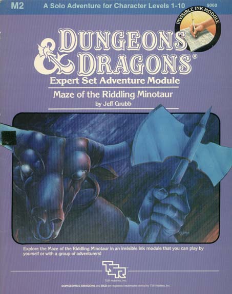 Item Code: #9060 (M2) Title: Maze of the Riddling Minotaur Type: Adventure Author: Jeff Grubb Published: 1983 Format: 32-page book w/invisible ink pen |