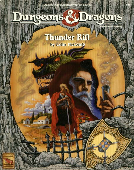 FILLED WITH ADVENTURE Now that you've had a taste of treasure hunting, are you ready to discover the road to and from adventure? Enter Thunder Rift and you'll find the excitement that lies outside the dungeon. From the Plunging Cataract Falls to the Keep of the Black Knight, the Rift offers a miniature world filled with friends and foes alike. Thunder Rift offers the novice Dungeon Master a rich environment in which to begin a campaign. He or she can run the companion modules designed for use with this accessory or create entirely original scenarios that only require a place to be played out. There are lots of adventure ideas built right into the text, and lots of space for inventive DMs to "do their own thing." Player characters will find the Rift to be an excellent home turf, and they can get to know the valley while they are getting to know their characters and the game. Recommended for beginner DMs and players - no level restrictions For use with both the DUNGEONS & DRAGONS Game Box and the D&D Rules Cyclopedia Comes with a large, colorful map sheet Acts as a setting for numerous TSR adventure modules, but remains completely self-contained, a perfect setting for any adventure Thunder Rift can be placed into any world in which the DM sets the campaign |