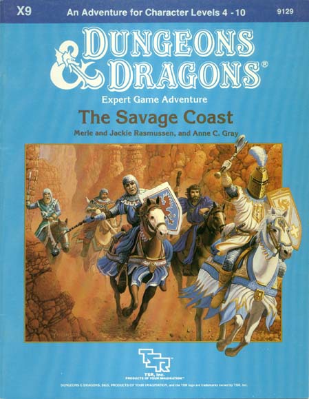 Or greed? Cartographers Guild members tell of lost cities and hidden treasures. Sailors tell of menacing beasts and cannibals to the west. They tell of savages along the shores who use gold nuggets for fishing weights. They also tell of great mounds of gold that collect at river mouths. You must decide the greater lure; the safety of Slagovich or the glimmer of gold along The Savage Coast. This adventure includes a map which expands the D&D game world, and a special expanded monsters section. |