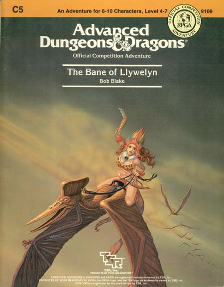 kingdom to survive. The ancient Prophecy of Brie foretells that in Pellham's darkest hour, a king from the past will return to restore the kingdom. The time of the prophecy is now. All is in readiness: the symbols of the ancient kings have been recovered, the keys to the royal tomb are in hand, powerful magics to revive the long-dead king have been secured at great cost. Only one problem remains...no one knows where the king is buried! The Bane of Llywelyn concludes the epic adventure of the Prophecy of Brie - can YOU insure that the quest will be a success? The adventure can be played as a seperate adventure or as the second part of the Prophecy of Brie series. This adventure is for use with the ADVNACED DUNGEONS & DRAGONS game and cannot be played without the AD&D rules produced by TSR, Inc. |