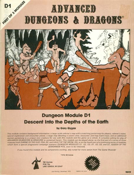 Item Code: #9019 (D1) Title: Descent Into the Depths of the Earth Type: Adventure Author: Gary Gygax Published: 1978 Format: 16-page book w/tri-fold cover |