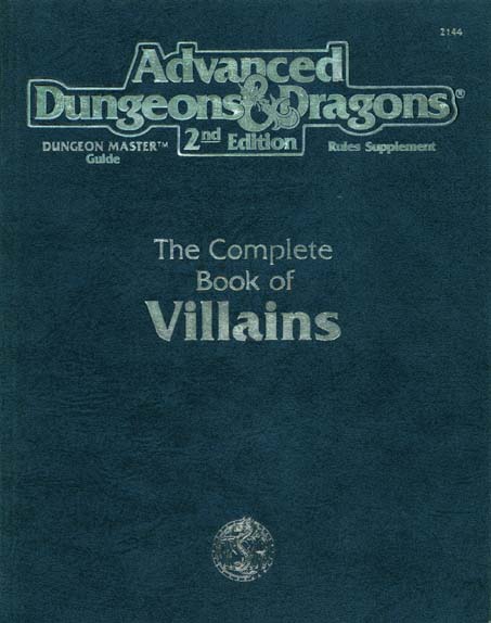 Item Code: #2144 (DMGR6 - nominal) Title: The Complete Book of Villains Type: Accessory Author: Kirk Botula Published: 1994 Format: 128-page perfect-bound book |