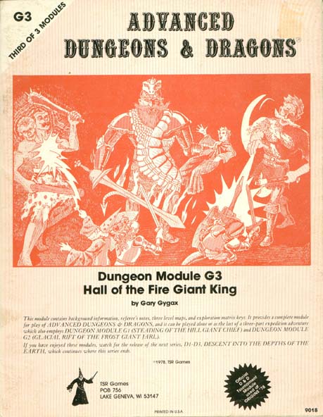 Item Code: #9018 (G3) Title: Hall of the Fire Giant King Type: Adventure Author: Gary Gygax Published: 1978 Format: 16-page book |