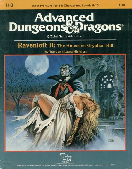 Item Code: #9181 (I10) Title: Ravenloft II: The House on Gryphon Hill Type: Adventure For: 4-6 characters, levels 8-10 Author: Tracy and Laura Hickman Format: 48-page book w/tri-fold cover, fold-out map/accessory sheet |