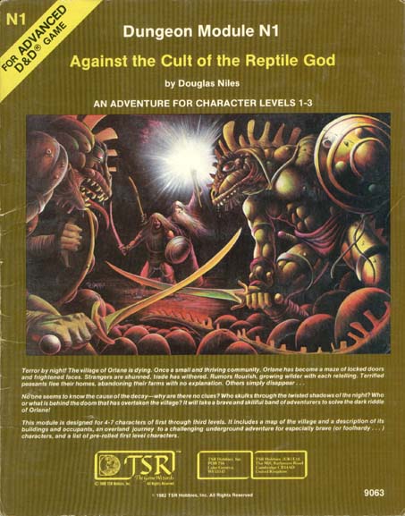 Item Code: #9063 (N1) Title: Against the Cult of the Reptile God Type: Adventure Author: Douglas Niles Published: 1982 Format: 28-page book |
