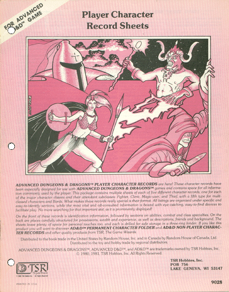 Item Code: #9028 Title: Player Character Record Sheets Type: Accesory Published: 1980 |