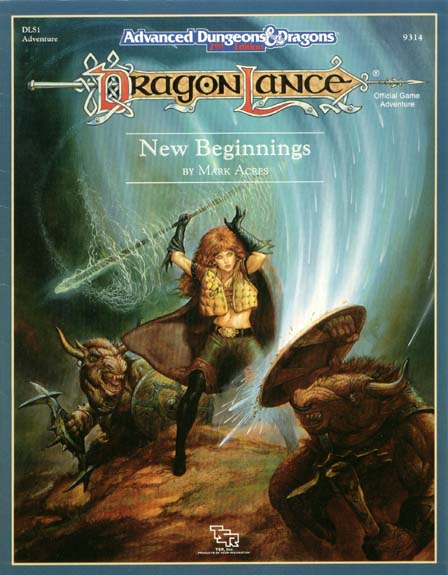 Item Code: #9314 (DLS1) Title: New Beginnings Author: Mark Acres Type: Adventure Published: 1991 Format: 32-page book w/tri-fold cover |