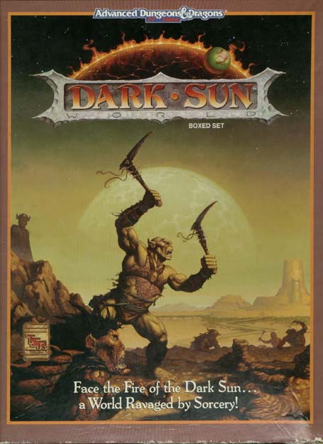 Item Code: #2400 Title: Dark Sun Campaign Setting Type: Campaign Setting Author: Timothy B. Brown and Troy Denning Published: 1991 Format: 2 96-page books, 2 24-page flip books, 16-page book, 2 fold-out maps, Complete Psionics Handbook Errata Sheet |
